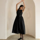 Designed in a fit-and-flare silhouette, this piece features a clean boat neckline and armholes finished with delicate contrast stitch embroidery. The front bodice is detailed with subtle pearl embroidery, adding a quiet point of interest. A V-cut yoke creates an elongated, slimming effect, while gentle gathers at the waist lend ease and movement to the form.