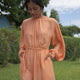 Love yourself a nice short dress? The Flame-Of-The-Forest dress is one of our most versatile pieces that looks good on everybody! The drawstring tie up at the neck and the waist allow for a custom fit and gives it a nice gathered effect. Plus, we added side pockets and bishop sleeves to give you comfort and function all in one.