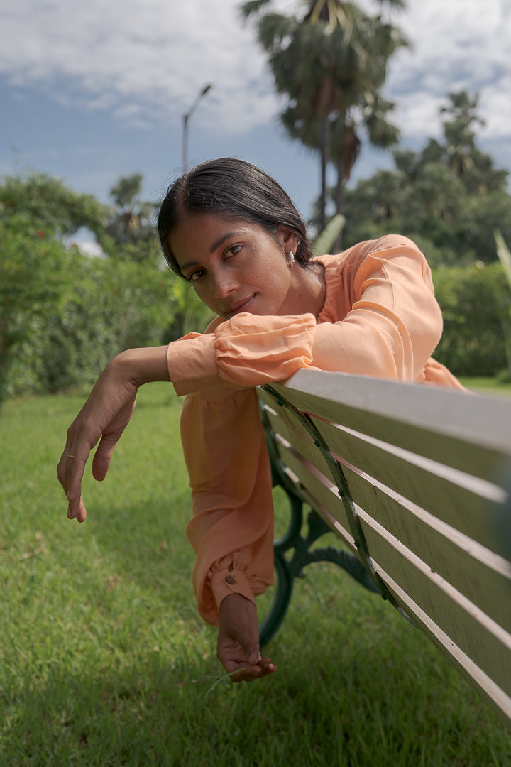 Wash separately in cold water. Use pH neutral washing soap (liquid soap or soap nuts). Keep away from ingredients like lemon, baking soda, vinegar, bleach, etc. Do not wring. Do not tumble dry. Do not use hot iron. Do not dry in direct sunlight. Dry flat in shade. Store naturally dyed garments in a dark place.