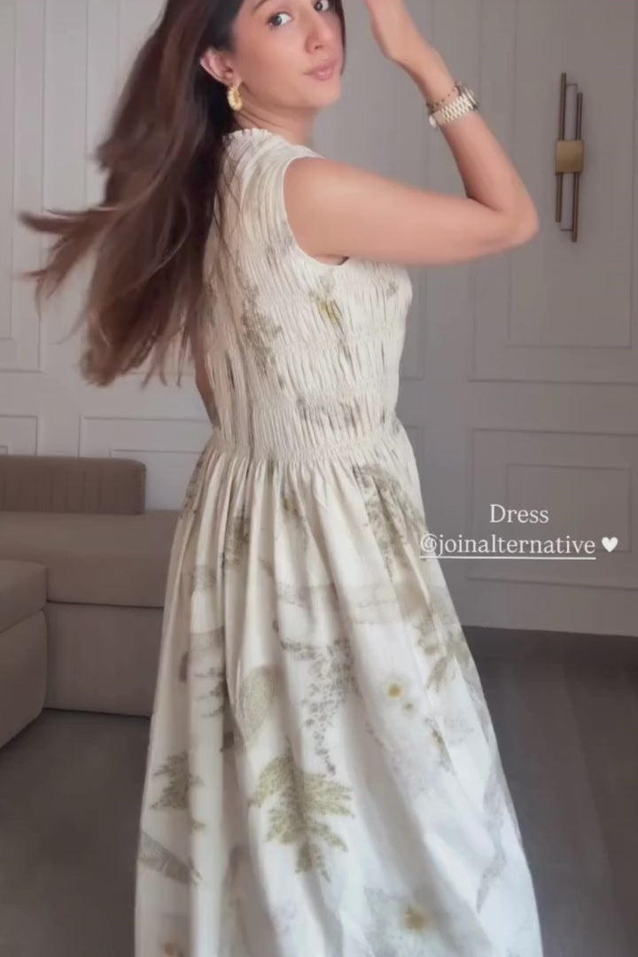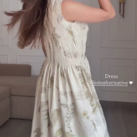 Embrace effortless style with our Live Leafy Smocked Dress, designed with an elasticated torso and intricate smocking details. The flattering fit-and-flare silhouette is suitable for all body types, providing comfort and confidence for every occasion. Lightweight and easy to carry, this dress is the perfect companion for your next vacation or summer outing.