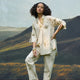 This set has a comfort fit and a timeless design. The top is a V neck kurta with box pleat detail while the pyjama style pants offer a comfortable fit with convenient pocket inserts. Enjoy hand embroidered details on the top for some sustainable charm.