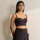 This bralette top features softly gathered fabric across the bust with intricate pleating along the straps that adds a delicate, considered detail, balancing structure with subtle femininity.