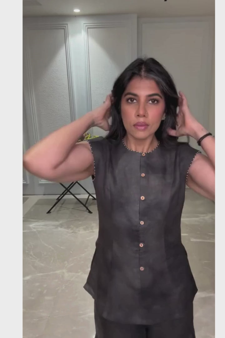 Enjoy the perfect blend of style and comfort with our Willow Vest Top & Sharara Pants Set. The top is a vest-style, short kurta featuring front open details and charming loop buttons, designed in a flattering panelled fit. The pants featured flared legs and gather details for a stylish silhouette.