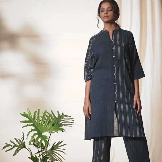 Cobalt Kala Cotton Long Shirt & Trousers Set