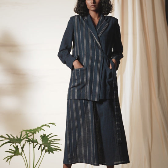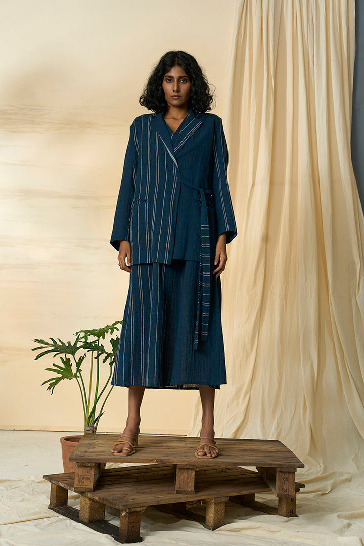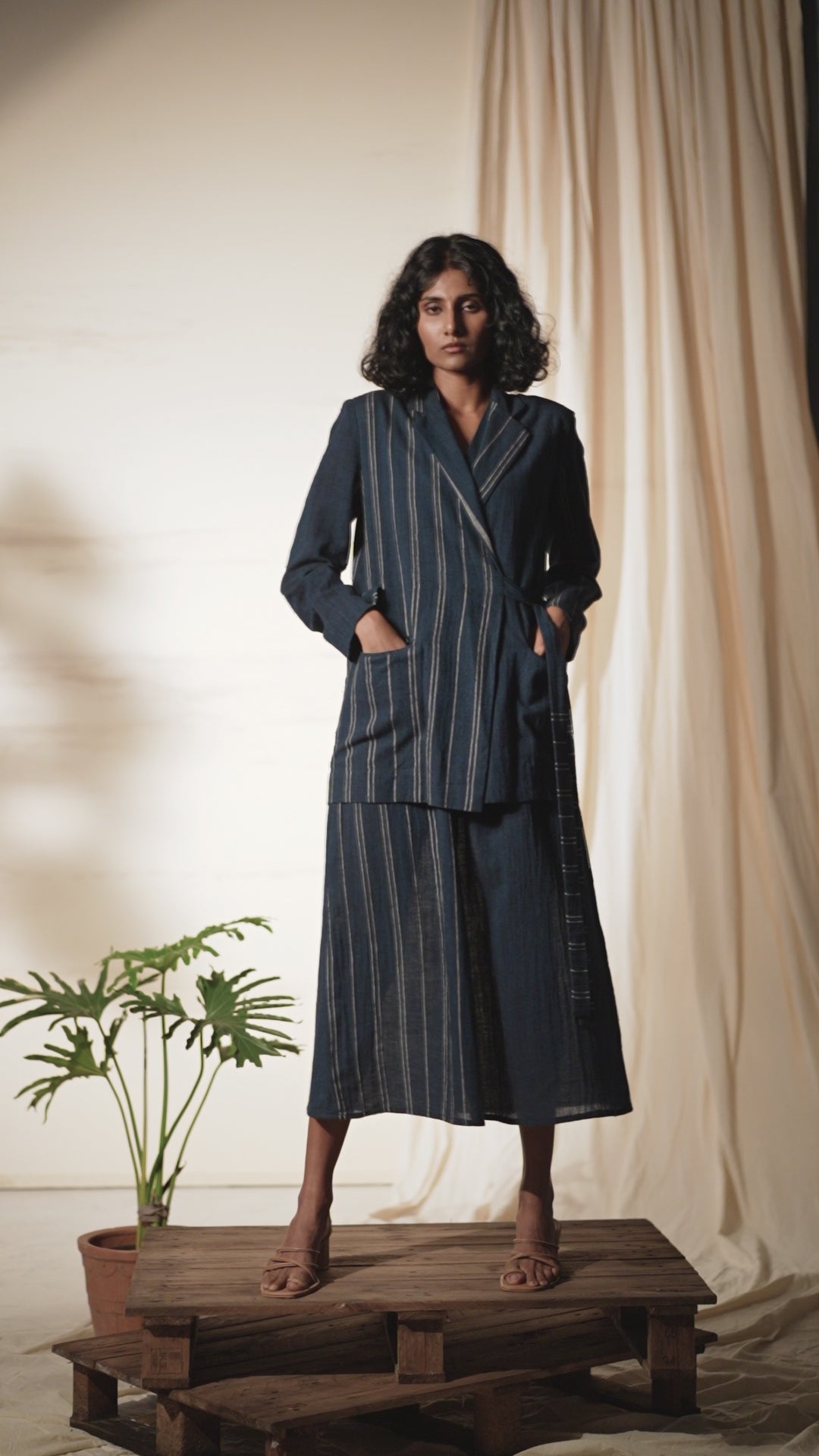 Power up without giving up on comfort. The Cobalt blazer comes with a notch collar and full length sleeves. It has an Angarakha style drawstring tie up for a relaxed, comfortable fit while making you stand out in the crowd.