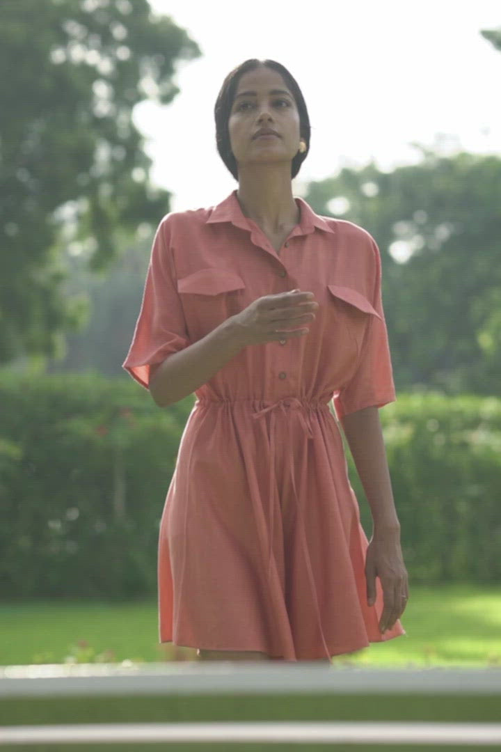 Designed with front button closure and a drawstring tie up at waist, our Dancing-In-The-Rain romper makes for a must-have wardrobe staple that easily transitions from lunches to meetings to vacations. It comes with batwing sleeves and pocket flap details. Dress it up or down as your mood demands. Ideal for when you said you'd be there in 5 minutes.
