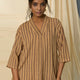 This kurta top features a flattering V neckline and a box pleat detail, creating a graceful silhouette. It has mid-length sleeves and delicate hand embroidery details at the neckline and the sleeve hem for some added charm.