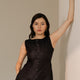 Cut in a slim fit with a princess silhouette, this piece is designed to gently contour the body. Adjustable back tie-ups allow the waist to be cinched as needed, finished with subtle contrast stitch detailing. A clean boat neckline adds balance, while contrast stitching brings quiet definition to the design.