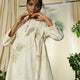 This flattering kurta boasts a center yoke adorned with delicate lace edging and coconut shell button neck. We have added pleats on the sides for a graceful flare, making it a beautiful and evergreen silhouette.