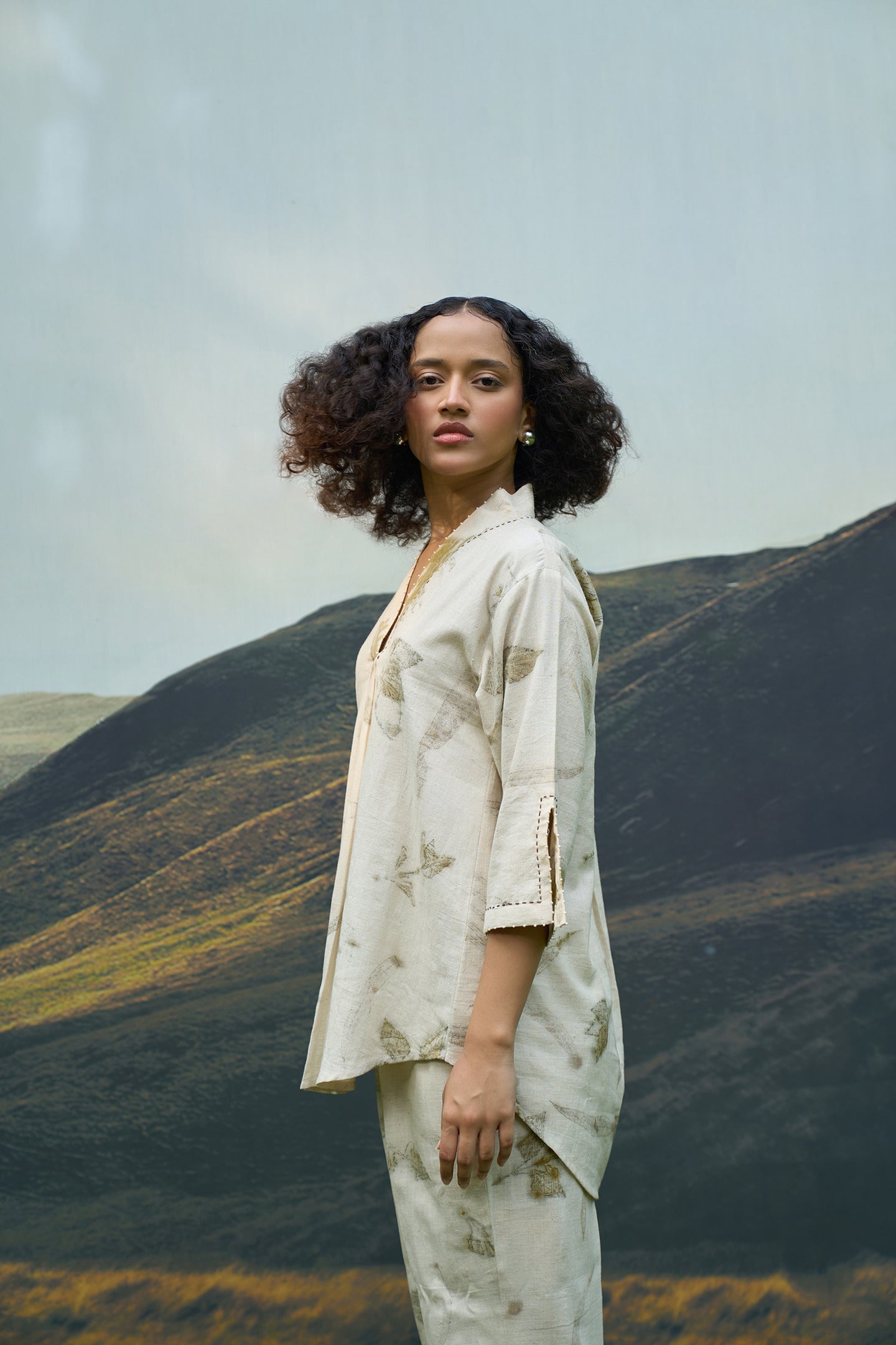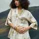 This kurta top features a flattering V neckline and a box pleat detail, creating a graceful silhouette for all body types. It has mid-length sleeves and delicate hand embroidery details at the neckline and the sleeve hem for some added charm.