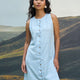 Elevate your summer wardrobe with our Petal Sleeveless Dress, designed in a flattering A-line silhouette. This dress features charming scallop edge details along the placket, beautifully complemented by eco-friendly coconut shell buttons for a unique touch.