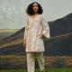 Embrace elegance with our Pink Foliage Kurta & Pants Set. The kurta is designed with gathered details at the shoulders, flared sleeves adorned with jute finishes and has an A-line cut that flatters all body types. The straight cut trousers feature elegant pleat details at the waist, adding a refined touch, while the side pocket inserts provide practicality for your daily essentials.