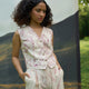 Introduce versatility to your wardrobe with our Pink Foliage Vest & Pants Set. This classic panelled vest top features double stitch details for added elegance and a comfortable fit that suits any occasion. The trousers are flared and designed with elegant pleat details at the waist for a flattering fit.