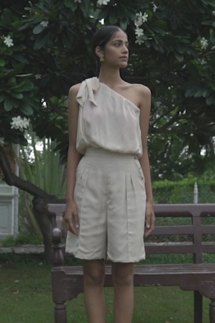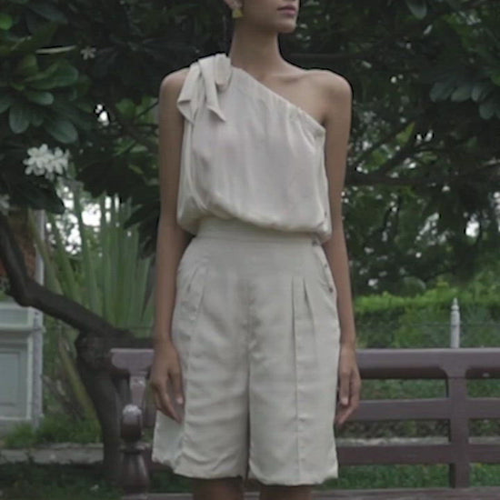 Tired of wearing LBDs on your nights out? Our Rain and Shine Romper is just as elegant as it is effortless. Designed with a one off shoulder drape and a side button opening, this knee length romper looks chic and lets you move around comfortably. Layer on some fun neckpieces and put on those strappy sandals and let the compliments pour in.