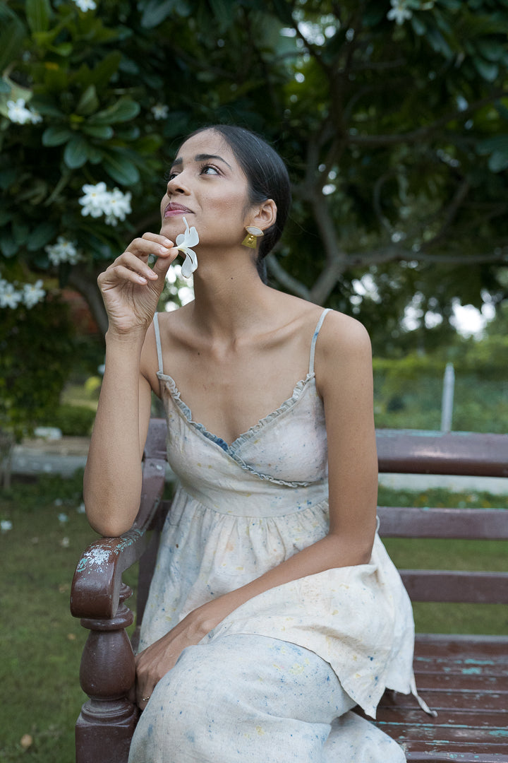 Wash separately in cold water. Use pH neutral washing soap (liquid soap or soap nuts). Keep away from ingredients like lemon, baking soda, vinegar, bleach, etc. Do not wring. Do not tumble dry. Do not use hot iron. Do not dry in direct sunlight. Dry flat in shade. Store naturally dyed garments in a dark place.
