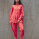 Step out in style for your festive occasions, poojas or small family gatherings. Our Eri Silk embroidered set features a short kurta with a stand collar, delicate embroidery details and some fun pleating details for that extra oomph. It is paired with dhoti style pants in ankle length with cuffs at the bottom.