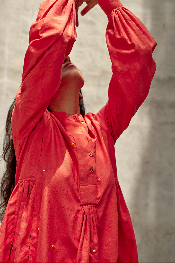 All our garments are hand-dyed using natural ingredients in small batches. While we try to match the colour you see in the photos, dye lot variation is a part of the natural dye process and there may be some colour difference between the photos and the actual product you receive, depending on the fabric batch.