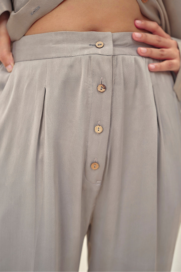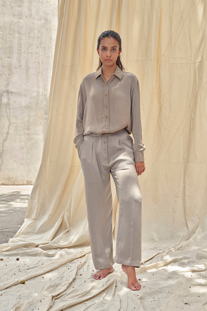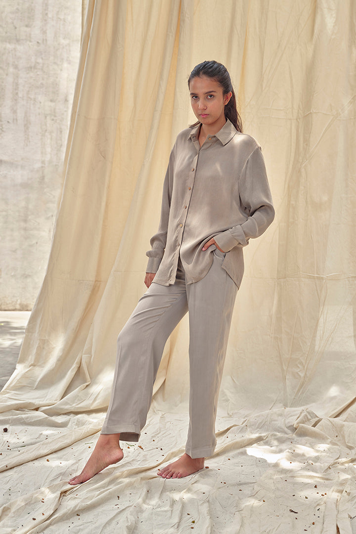Feel luxe all day with our Superstorm Set. Made with orange fibre, this set includes a classic button down shirt and straight fit trousers. It has a relaxed fitting which basically means it's super comfortable while making you look chic.