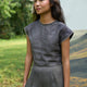 This cute box fit top is crafted with organic hemp with a marbling print. It has a relaxed yet stylish fit with charming buttonhole stitch details on the collar and sleeves. Pair it with our Willow Tiered Skirt for a fun and pretty look.